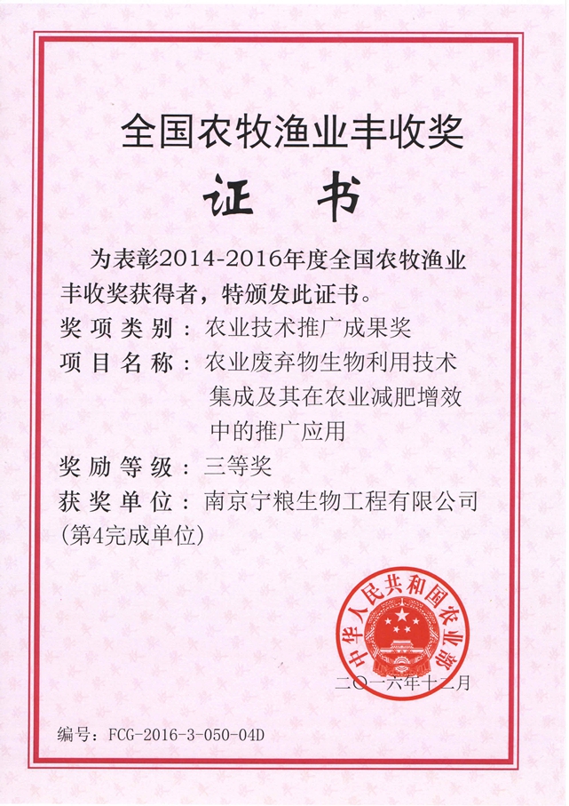 南京寧糧生物工程有限公司(以下簡稱“公司”)是專業(yè)從事農(nóng)用微生物菌劑、有機(jī)(類)肥料、復(fù)合微生物肥料、水溶肥料、土壤調(diào)理劑、重金屬葉面阻控劑等產(chǎn)品的研發(fā)、生產(chǎn)、銷售和服務(wù)的高新技術(shù)企業(yè)。公司占地200余畝。 公司擁有先進(jìn)的生產(chǎn)、檢測設(shè)備與管理規(guī)范的生產(chǎn)基地。與南京農(nóng)業(yè)大學(xué)、江蘇省農(nóng)業(yè)科學(xué)院、中科院南京土壤研究所等科研院校建立了緊密的產(chǎn)學(xué)研合作關(guān)系,在南京農(nóng)業(yè)大學(xué)和江蘇省農(nóng)科院設(shè)有“寧糧”獎學(xué)金、獎教金和獎勵基金;擁有多個研發(fā)平臺并建有江蘇省研究生工作站;聘請了多位科研院校的教授專家為公司的技術(shù)顧問和技術(shù)指導(dǎo)。公司現(xiàn)已是中國有機(jī)(類)肥料生產(chǎn)技術(shù)創(chuàng)新戰(zhàn)略聯(lián)盟核心企業(yè)、江蘇高校協(xié)同創(chuàng)新中心有機(jī)固...